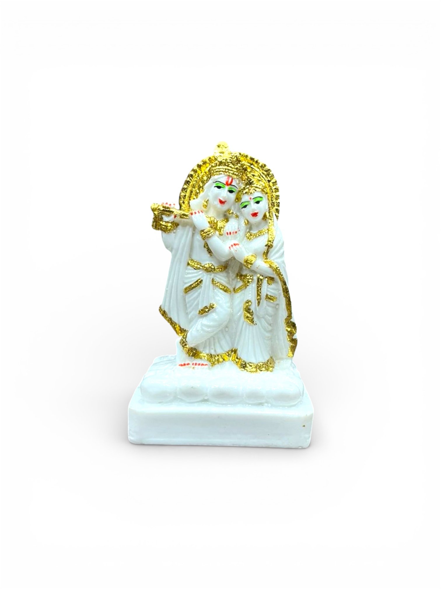 “Symbolising divine love, harmony, and spiritual union, this Radha Krishna Idol embodies the sacred bond between devotion and pure consciousness. Radha and Krishna together represent eternal love, balance between the heart and soul, and the harmony of divine energies. Their presence brings an aura of joy, compassion, and emotional fulfilment into the environment. Designed in an elegant white base enhanced with delicate gold accents, the idol reflects a serene temple-inspired aesthetic. The graceful expressions, flowing attire, and detailed ornaments highlight refined craftsmanship while maintaining a soft spiritual elegance. The harmonious posture of Radha and Krishna creates a visually calming composition that radiates warmth and divine beauty. Energetically, this idol promotes love, emotional healing, and peaceful relationships. It encourages positivity, unity, and devotion while fostering a gentle, uplifting vibration within the space. Blending devotional symbolism with contemporary décor appeal, this piece enhances both sacred spaces and modern interiors. Whether placed in a home temple or styled as a spiritual décor accent, it adds grace, serenity, and timeless charm.”