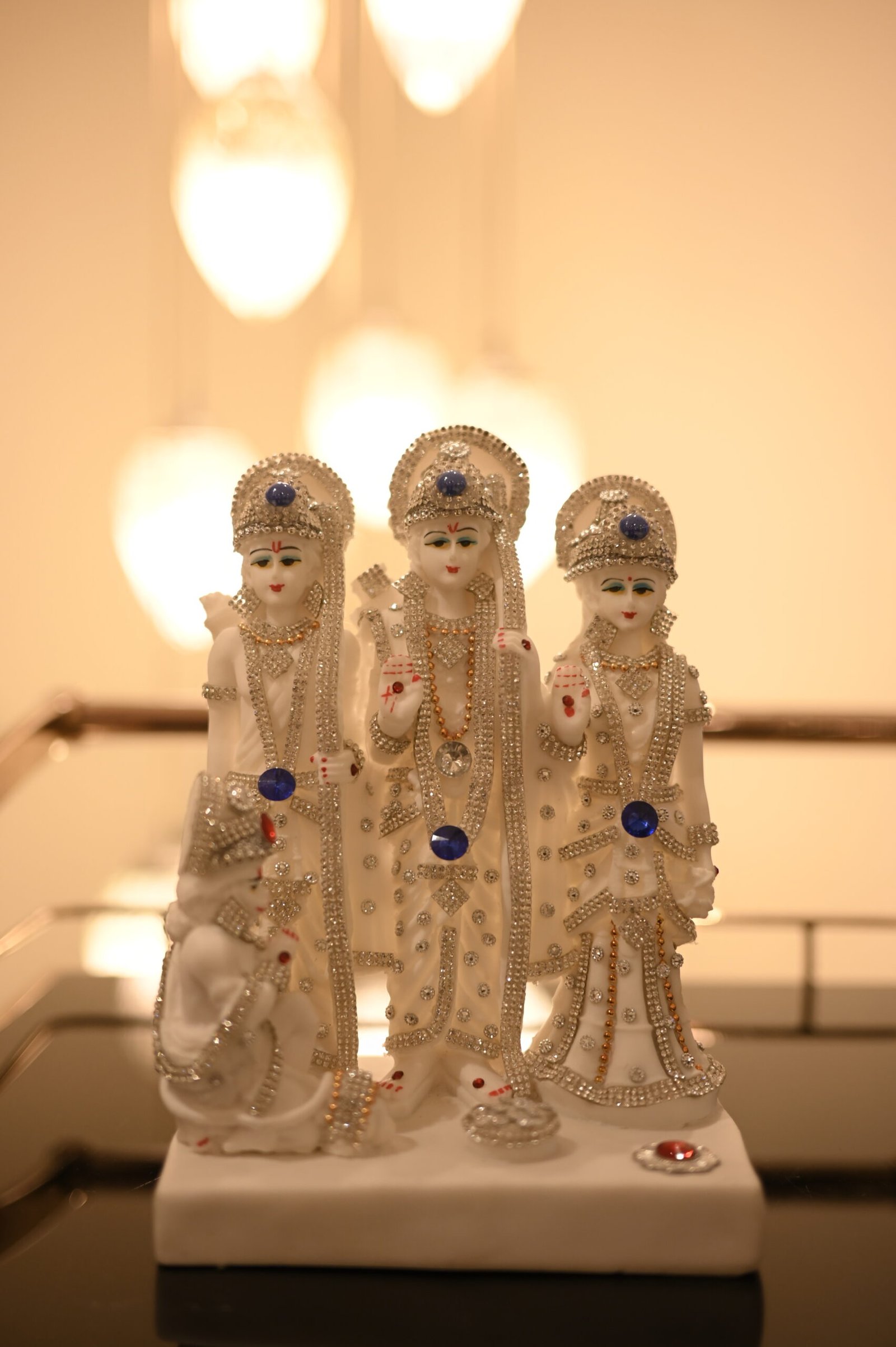 Experience divine serenity and strength with this intricately crafted Ram Darbar Idol, depicting Lord Ram, Goddess Sita, Lord Lakshman, and Lord Hanuman in their eternal grace. Adorned with sparkling embellishments and detailed craftsmanship, this idol embodies faith, protection, and harmony—perfect for your pooja space or as a spiritual gift.