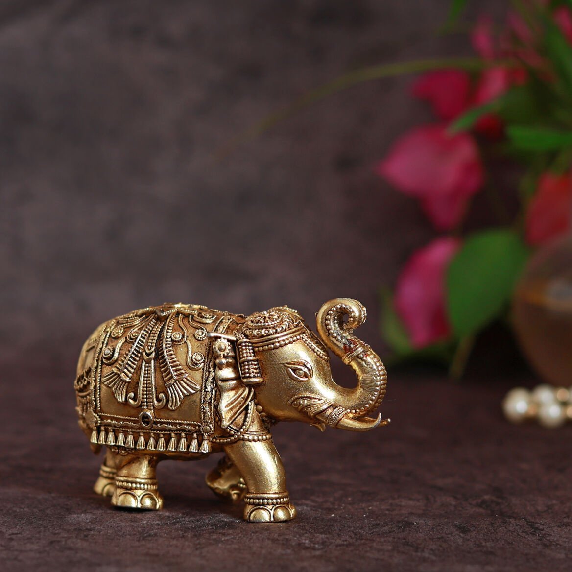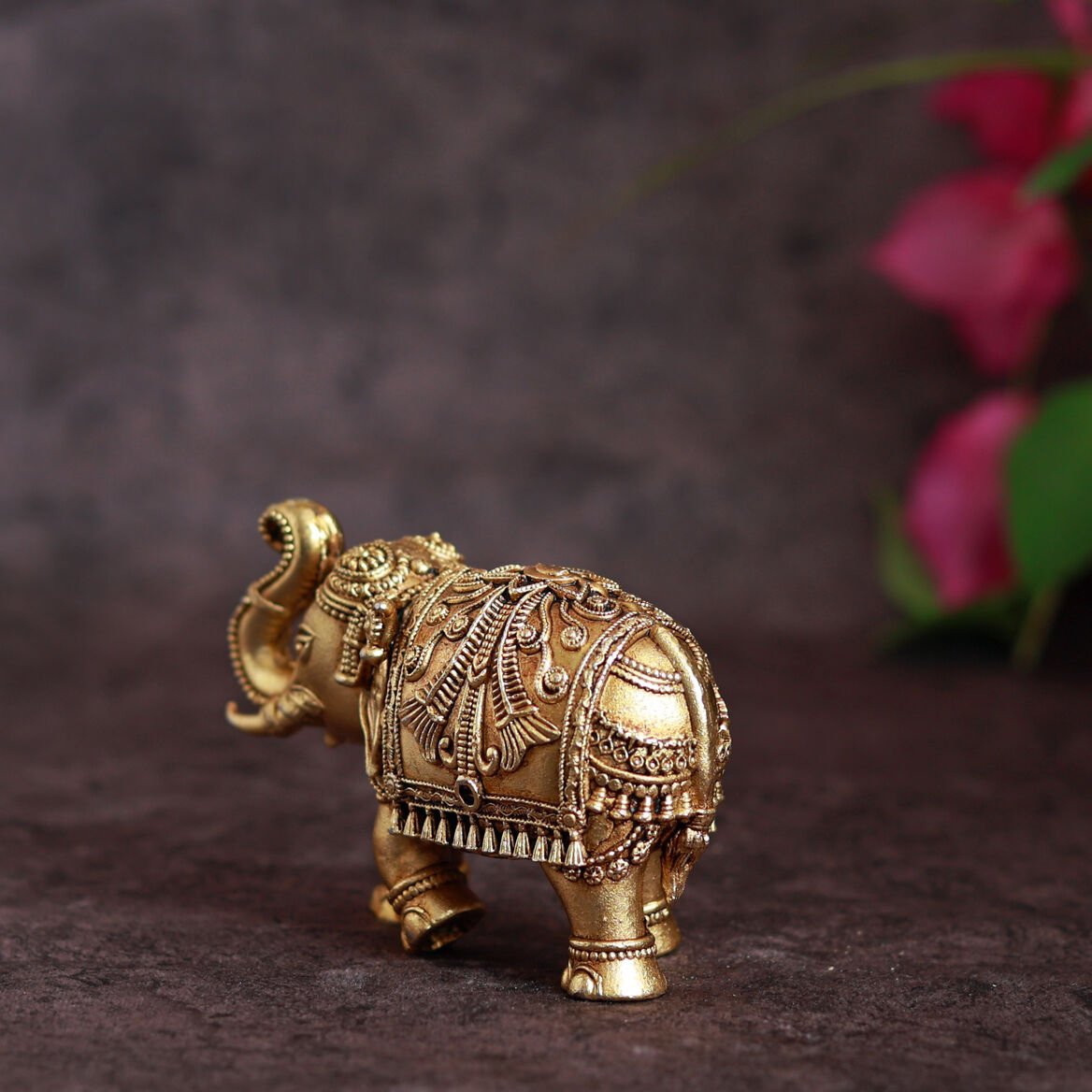 A timeless symbol of strength, wisdom, and prosperity, this intricately crafted Royal Elephant Figurine adds a regal charm to your home décor. With detailed handwork and an antique gold finish, it brings balance, stability, and good fortune — ideal for living rooms, entryways, or office spaces. Placement Tip: Place in the South-West direction of your home or workspace to attract wealth, peace, and success.