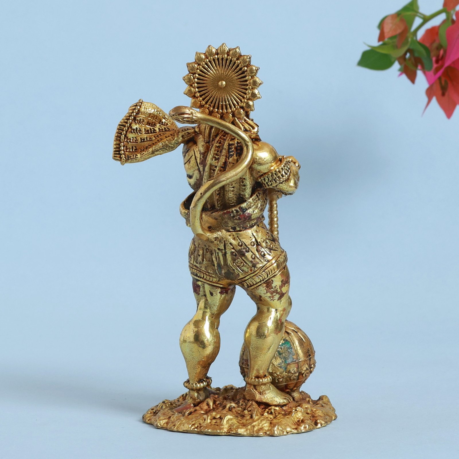 Invoke strength, devotion, and courage with this powerful idol of Lord Hanuman, the eternal symbol of loyalty and protection. Crafted in a radiant antique brass finish, this statue beautifully captures Hanuman Ji’s divine valor as he stands tall with his Gada and folded arms, exuding energy and assurance. Perfect for your home temple, study desk, or office to invite positivity and willpower.